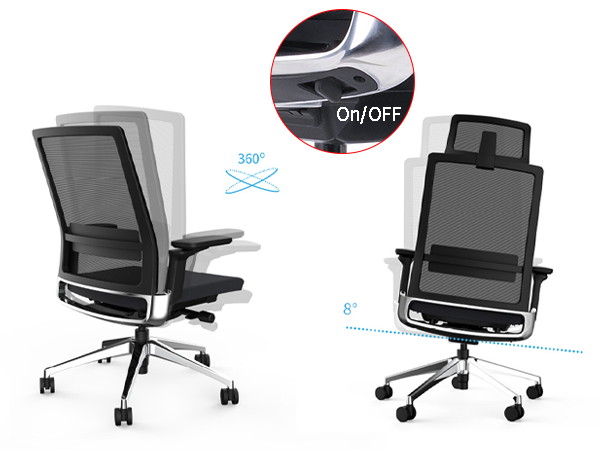 用家亦可以解除傾仰鎖定,自由地向後傾