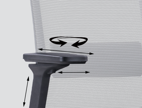 扶手可以上下,前後以及左右約15°旋轉,使扶手和肘關節形成直角,以支持您長時間使用電腦鼠標