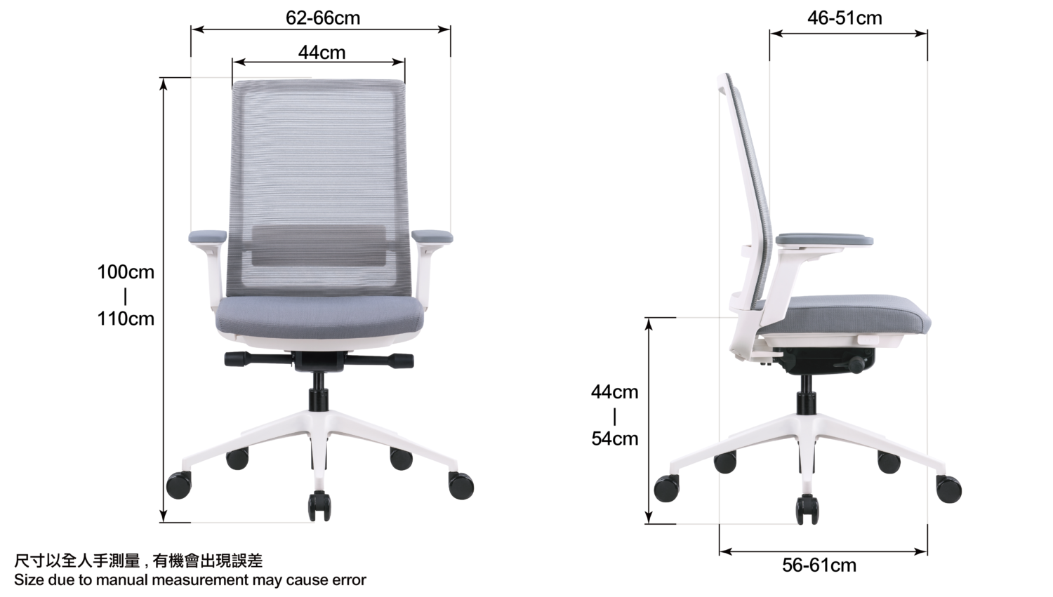 尺寸: 62cm (W) x 61cm (D) x 100-110cm (H)
